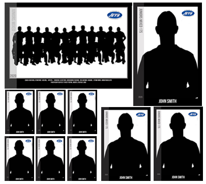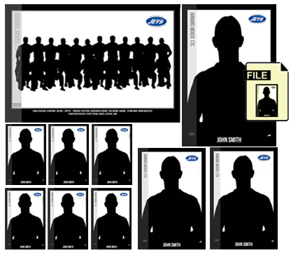 Email confirmation will be sent, all orders delivered to Jets club. Individual photos will be used to compose final team image with custom background.